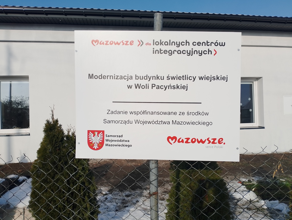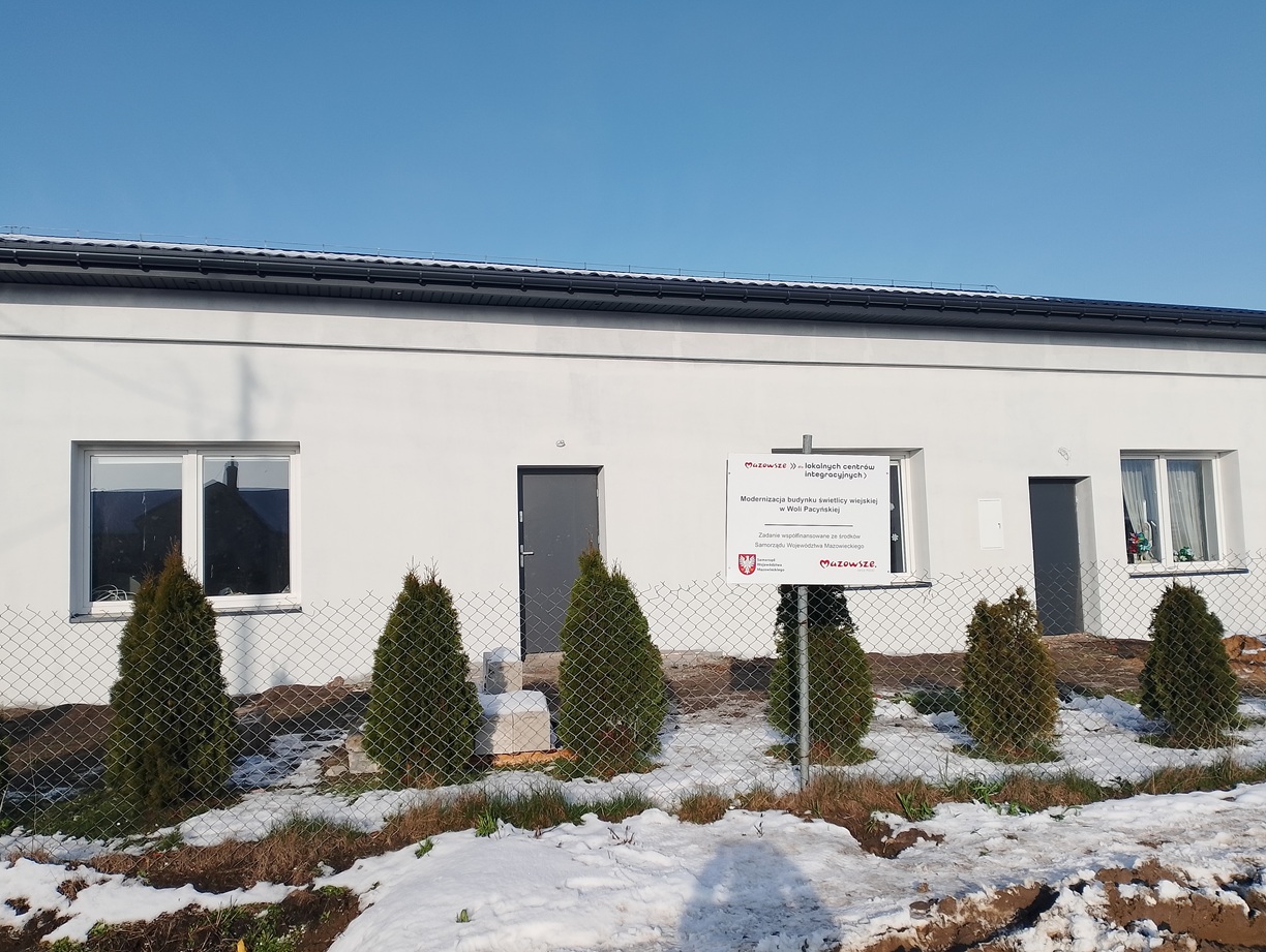W dniu 27 listopada 2025 r. odbył się odbiór realizacji zadania pn. „ Modernizacja budynku świetlicy wiejskiej w Woli Pacyńskiej. Roboty budowlane obejmowały izolację termiczną ścian zewnętrznych oraz położenie struktury zabezpieczającej ściany przed niekorzystnymi zjawiskami zewnętrznymi. Drugim elementem zadania była zmiana pokrycia dachowego budynku z niespełniającej swojej funkcji papy termozgrzewalnej na blachę. Działania te miały na celu zmniejszenie strat ciepła w budynku, unowocześnienie, poprawienie funkcjonalności oraz zwiększenie walorów estetycznych użytkowanego obiektu.